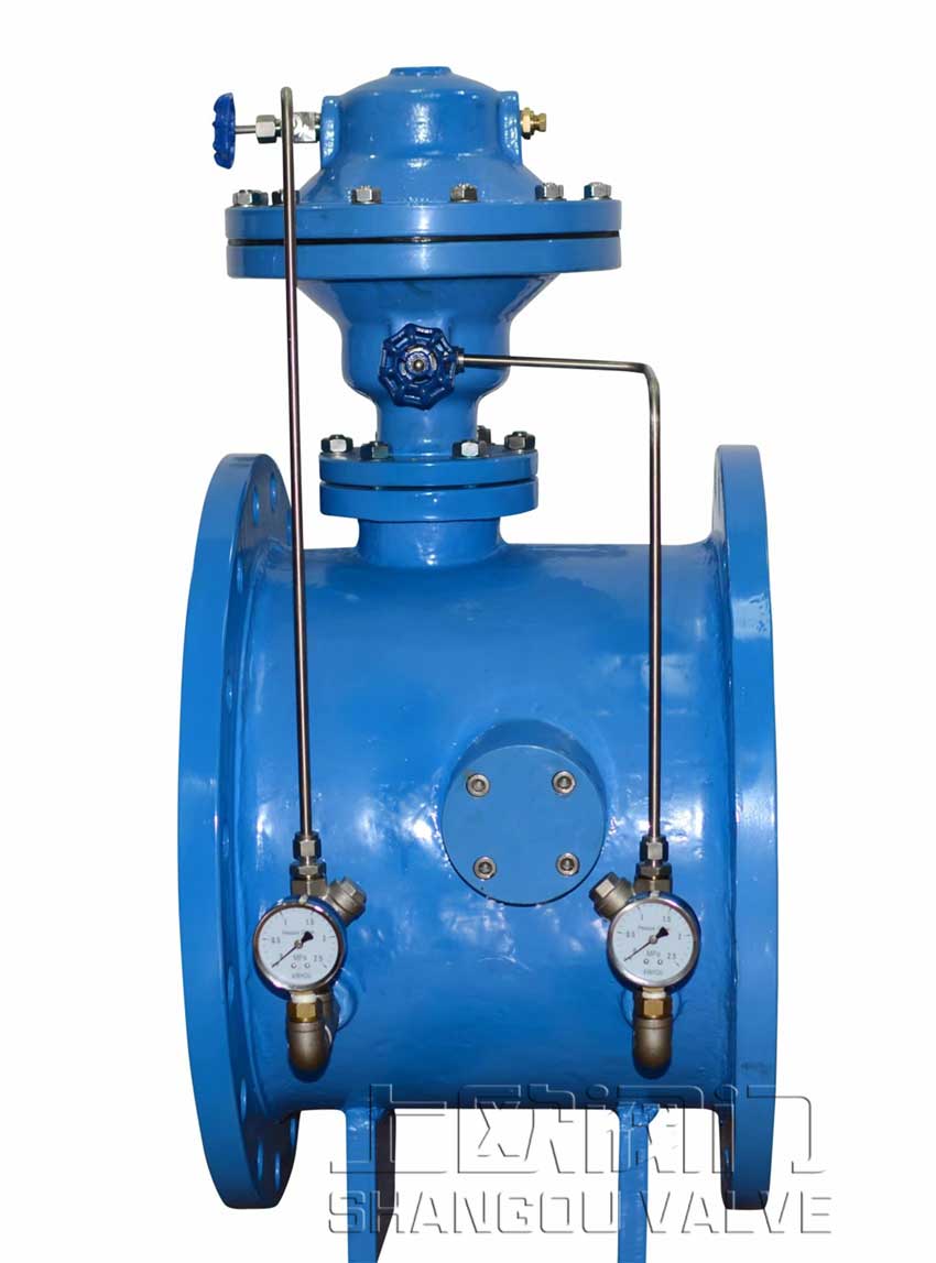 9、適應性強:產品有膜片式與活塞式分別適用于各類工況與介質。外控組件中的特殊過濾器能有效過濾污水中的雜質顆粒,保證進入膜片腔或活塞缸內介質為清潔液體,該過濾裝置具有自沖洗功能,旁通進口端設有排渣裝置,可手動定期排渣。調節型可根據工況要求,采用手動或者電動控制開度進行流量調節。
